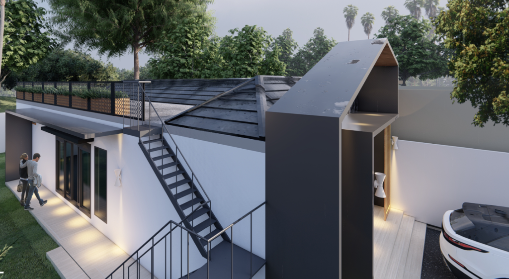 Desain Rumah 1 Lantai 10×18 m – Bogora. Desain < 100 M2, Desain Favorit DESAIN RUMAH IBU B – BOGOR – LUAS 70/165 M2 – RUMAH 1 LANTAI+ROOFTOP – GAYA MODERN TROPIS CARPORT; R. TAMU; R. KELUARGA; DAPUR; 2 KAMAR TIDUR; 3 KAMAR MANDI; TAMAN BELAKANG; AREA JEMUR; ROOFTOP Cek Hasil Konstruksi